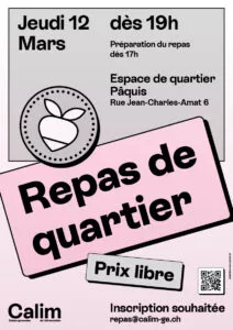 Inscription souhaitée par mail : repas@calim-ge.ch