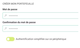 A ce moment, vous devez entrer le code de votre portefeuille (2e mot de passe défini avec au moins 8 caractères) ou le code PIN de l’authentification simplifiée si vous avez activer cette fonction dans Préférences (voir plus haut).