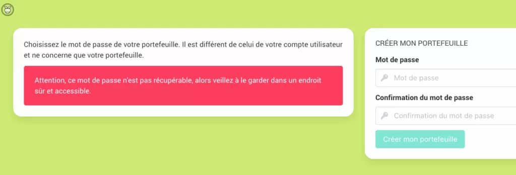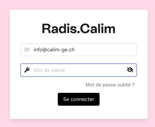Votre email et ce mot de passe vous permettent d’accéder à votre compte Calim et à votre portefeuille en Radis.