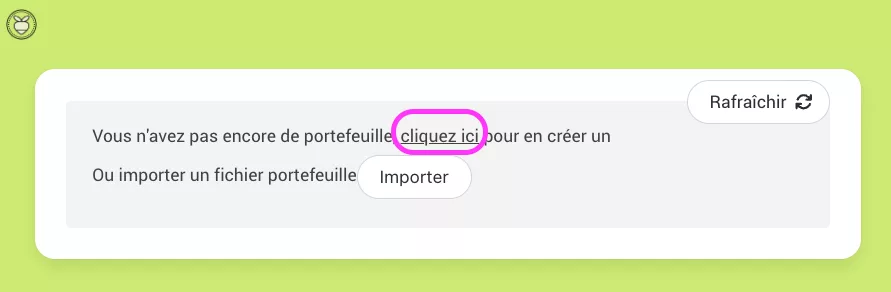 -depuis votre compte Calim, cliquez sur le l’icône Créer/Accéder à mon portefeuille en Radis