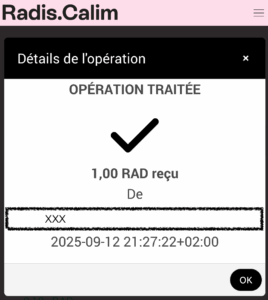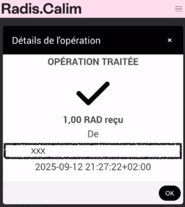 Une fois la cotisation payée, votre compte sera chargé en Radis (150 pour les personnes de 14 ans et plus ; 75 pour les enfants de moins de 14 ans). Délai maximal : 8 jours ouvrés